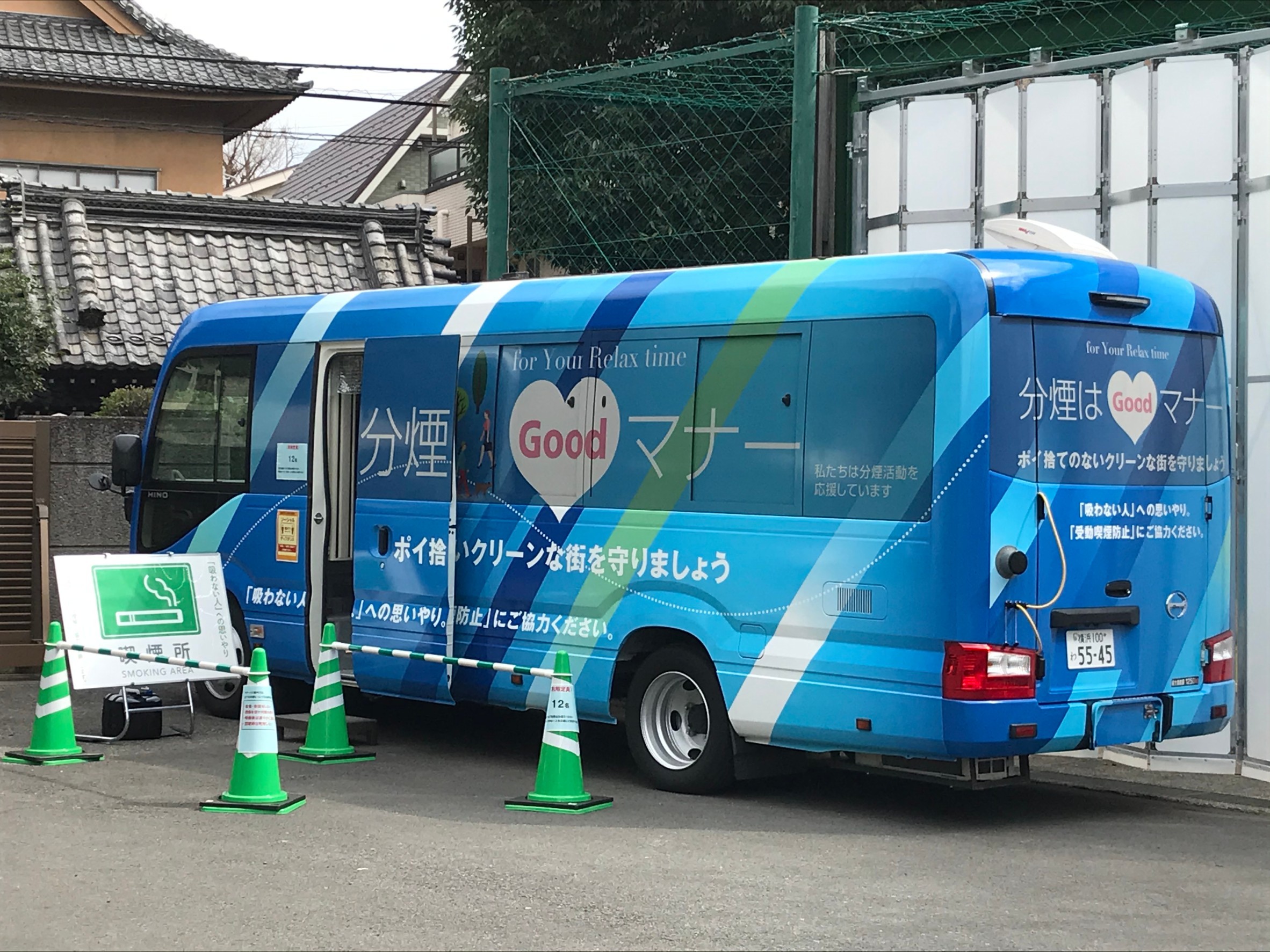 写真は一昨日、街宣車活動の帰りに寄った飛鳥山公園で撮りました。ドラマ館のおみやげ館のそばに分煙マナーカーが4月初旬まで設置されています。外に煙が漏れない喫煙所になっています。