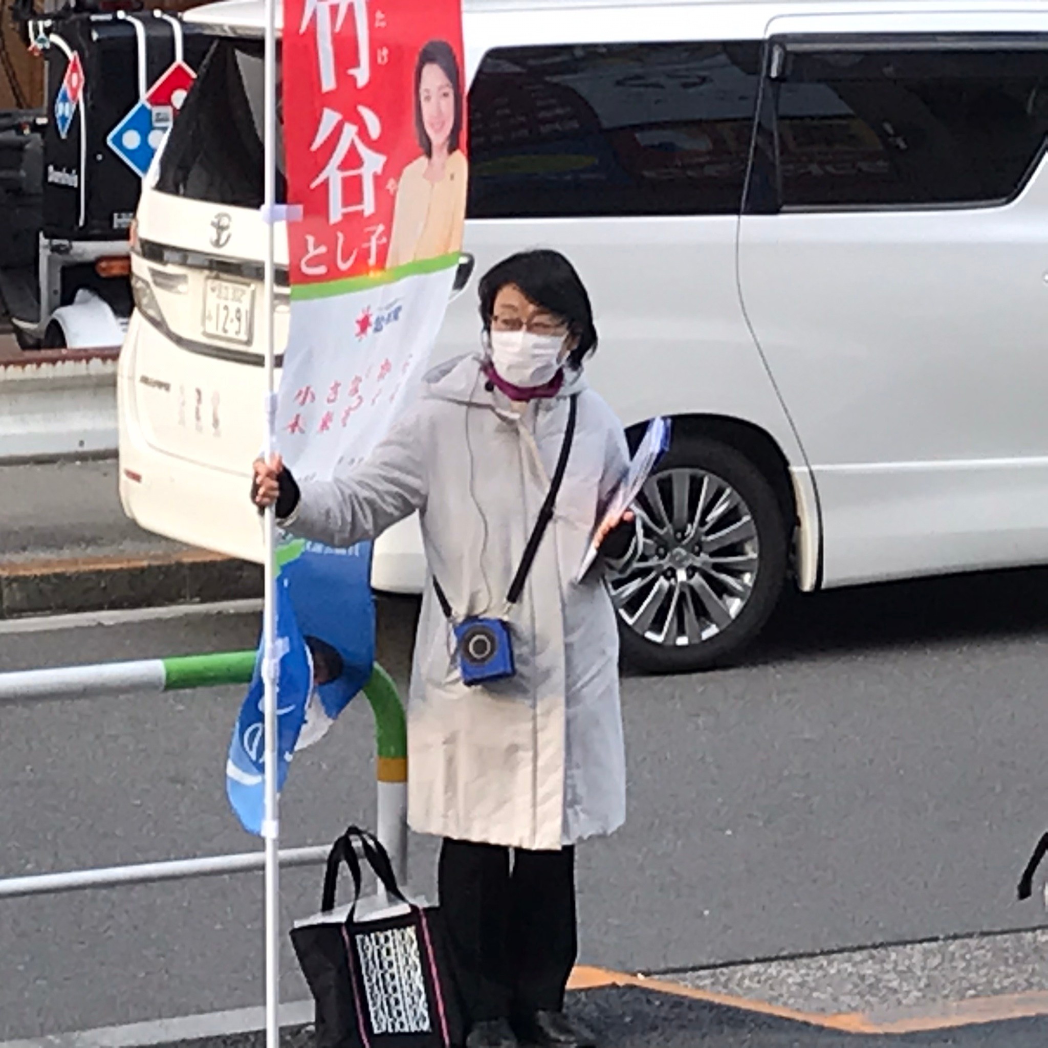 昨日は竹谷とし子参議院議員との旗を掲げて、スーパー前で区政報告。合わせて現在全国で公明党が行っているアンケート活動や女性のステップアップ講座についてもアピールいたしました。