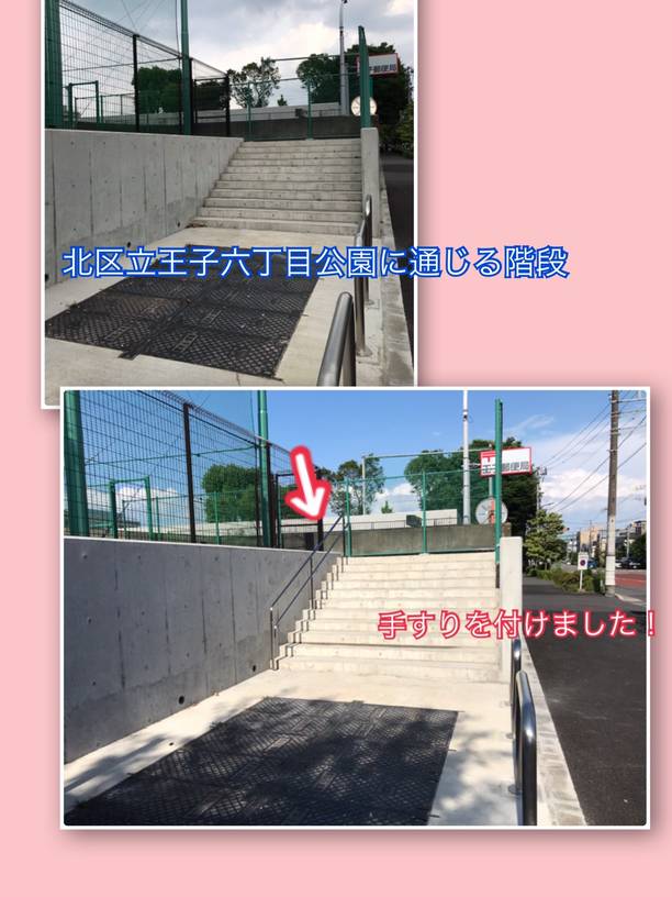 ①王子六丁目公園に通じる階段に手すりを付けました!