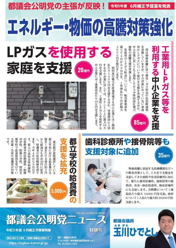 なお、補正予算の内容につきましては、都議会公明党ニュース特別号(令和5年度6月補正予算案特集)をご覧ください。