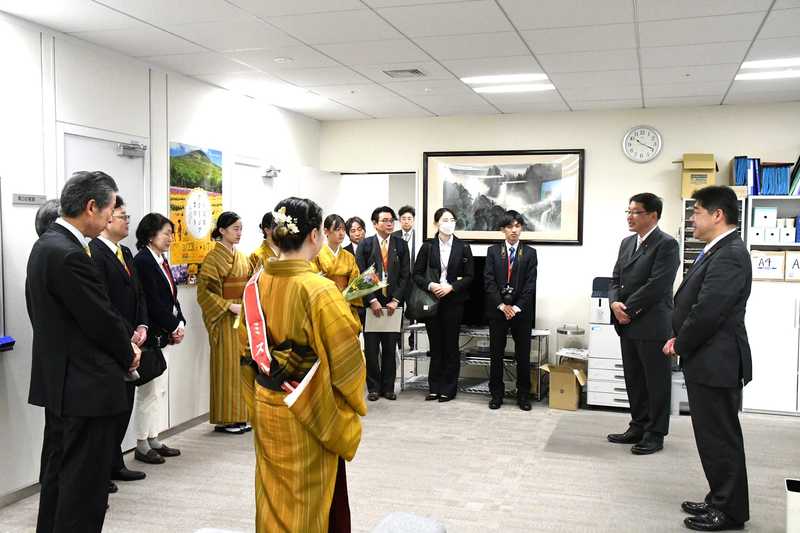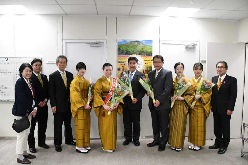 都議会公明党控室にて、「第58回八丈島フリージアまつり」の表敬訪問があり、山下八丈島町長、山本議長はじめ、ミス八丈島のみなさまをお迎えしました。